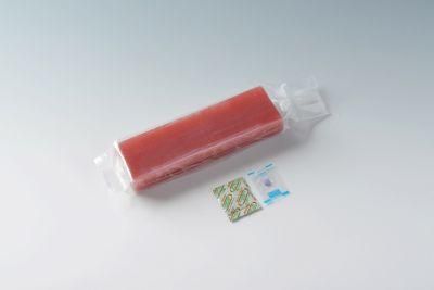 切り分けた羊羹をエージレスと呼ばれる脱酸素材を入れたビニールの袋で