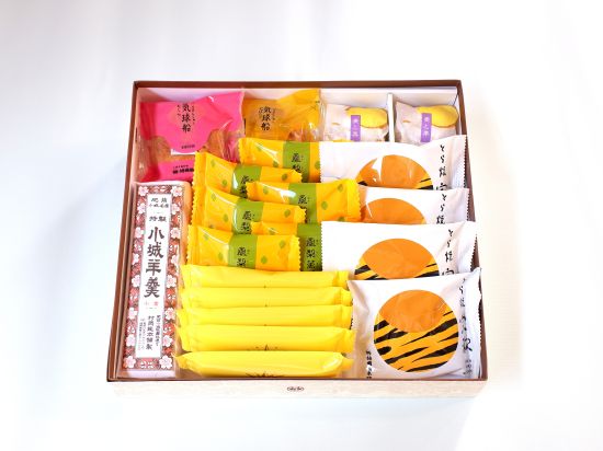 ■あげまきサブレ5個、鳳梨萬頭6個、麦と栗2個、宗歓4個、気球船2個、特製切り羊羹1本の詰め合わせ
